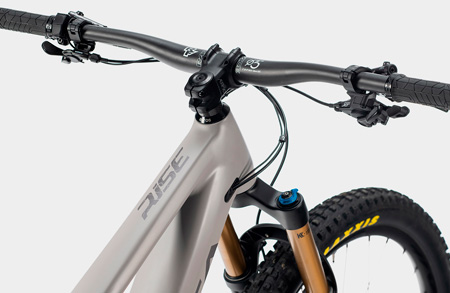 Rise выстроен согласно идее электро-байка, но который имеет всё же облегчённый корпус, что на выходе обеспечивает электровелосипеду вес на уровне 16,2 кг. Учитывая, что это трейловый электробайк на 29-х колёсах, с ходом подвески в 140 мм, то результат впечатляющий.