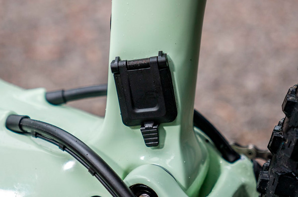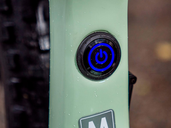 Кнопка включения/выключения питания велосипеда расположена на подседельной трубе и развернута внутрь треугольника.
