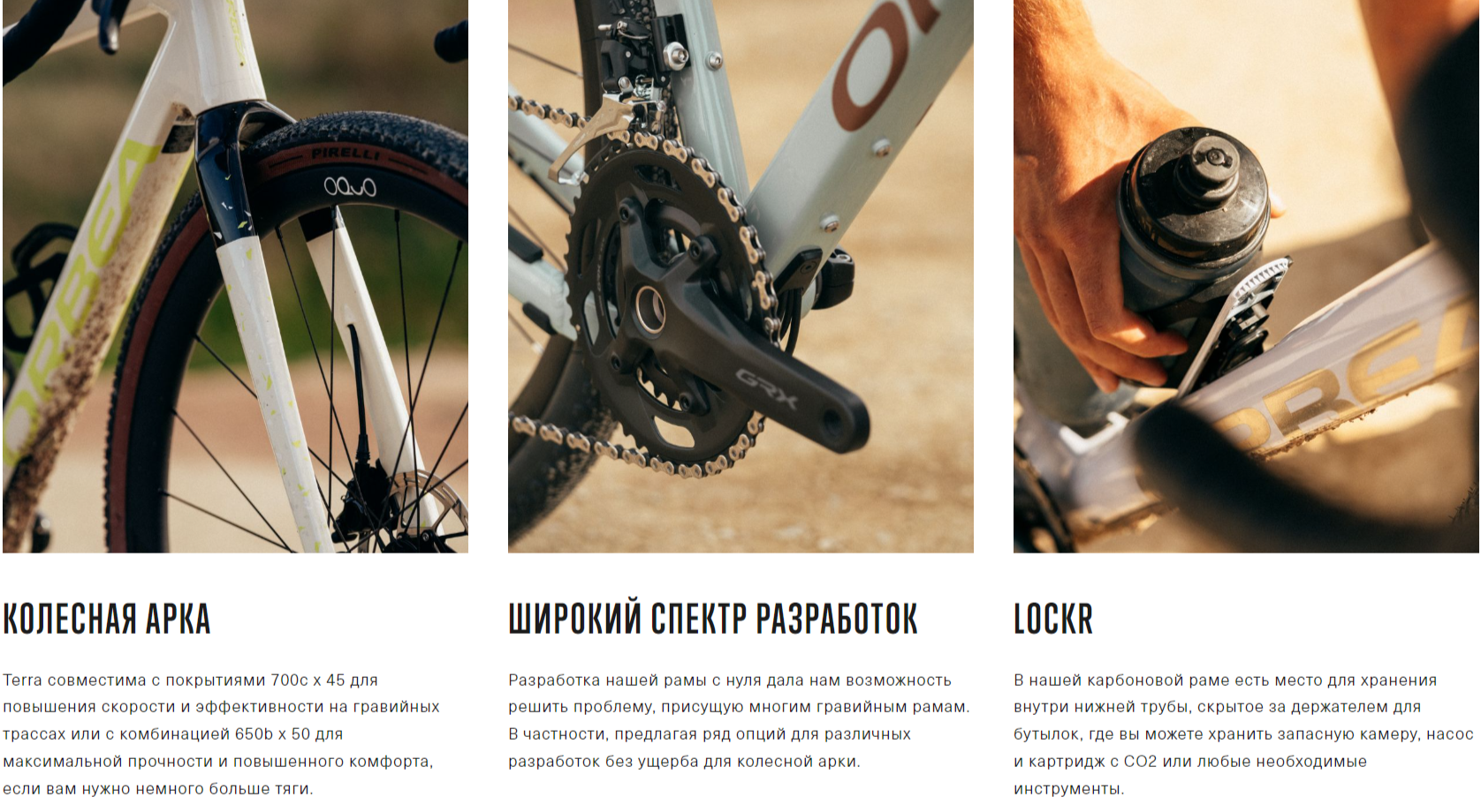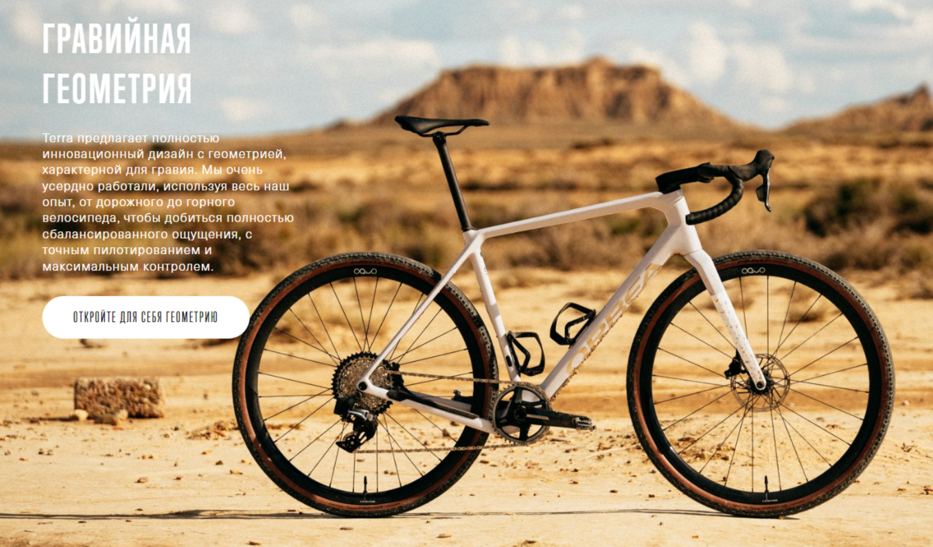Разработанный для гравия, OrbeaTerra не является ни адаптированным дорожным велосипедом, ни горным велосипедом, вес которого уменьшен. Терра — это Gravel. Наслаждайтесь большим комфортом в поездках и узнайте, где заканчивается неизведанная тропа. Существует целый мир, и OrbeaТерра готов исследовать его вместе с вами.