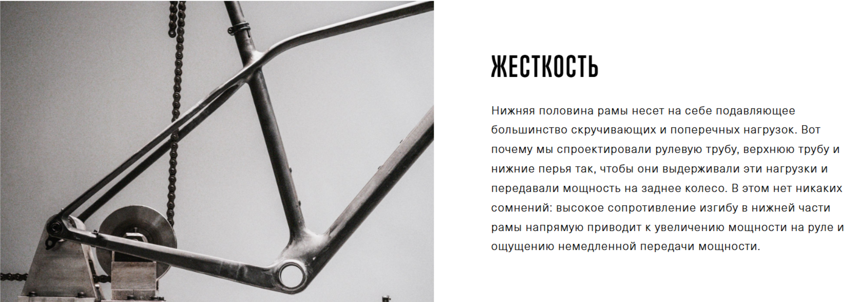 Нижняя половина рамы несет на себе подавляющее большинство скручивающих и поперечных нагрузок. Вот почему мы спроектировали рулевую трубу, верхнюю трубу и нижние перья так, чтобы они выдерживали эти нагрузки и передавали мощность на заднее колесо. В этом нет никаких сомнений: высокое сопротивление изгибу в нижней части рамы напрямую приводит к увеличению мощности на руле и ощущению немедленной передачи мощности.