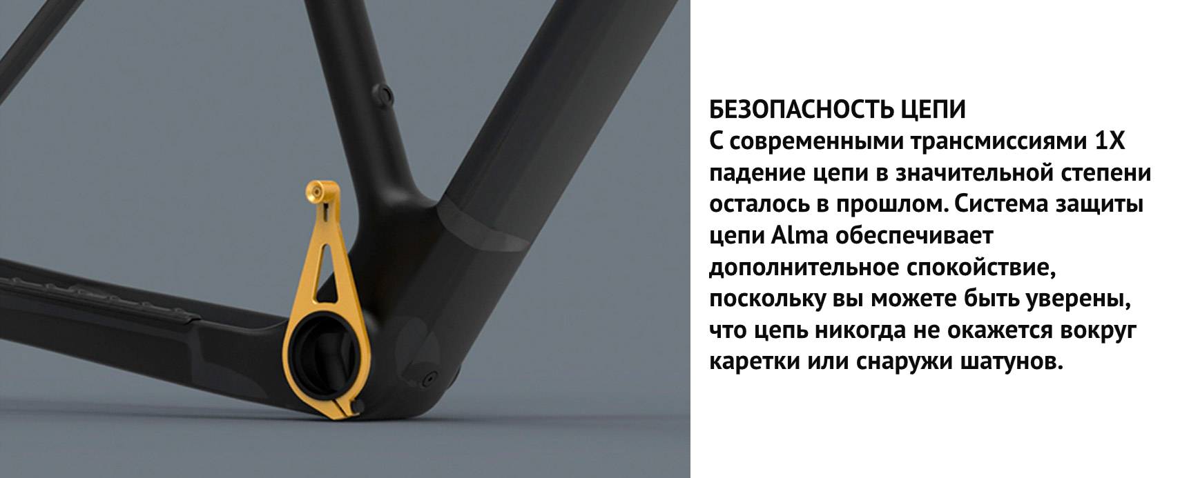 Геометрия World Cup от Alma — результат многолетнего опыта проектирования велосипедов для кросс-кантри мирового класса. Положение тела агрессивное, удобное и быстрое. В отличие от геометрии для трейла, которая жертвует точностью ради управляемости, геометрия для кросс-кантри точная и интуитивно понятная для максимальной передачи мощности. Углы и размеры тщательно рассчитываются для разных размеров, что позволяет увеличить мощность за счёт повышения эффективности.