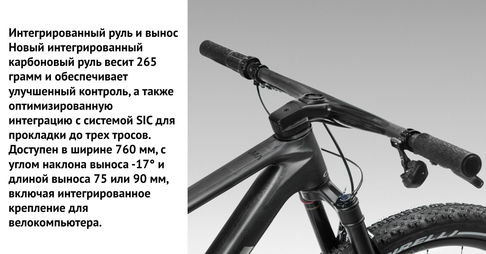 Интеграция руля и выноса создает безупречные линии и минимальный вес, повышает точность управления и позволяет организовать более прямую внутреннюю прокладку тросов.