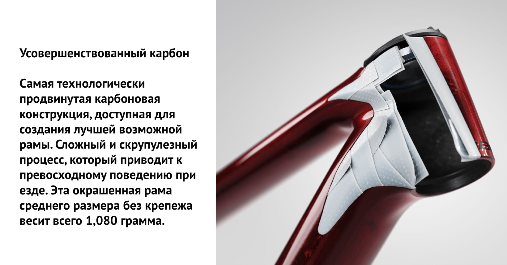 Продвинутая карбоновая конструкция OrbaAlma, оптимизированный задний треугольник и конструкция Powerspine обеспечивают отличный баланс веса с оптимальным поглощением вибрации. Это означает, что меньше ватт тратится на усталость и больше ватт передается на заднее колесо.