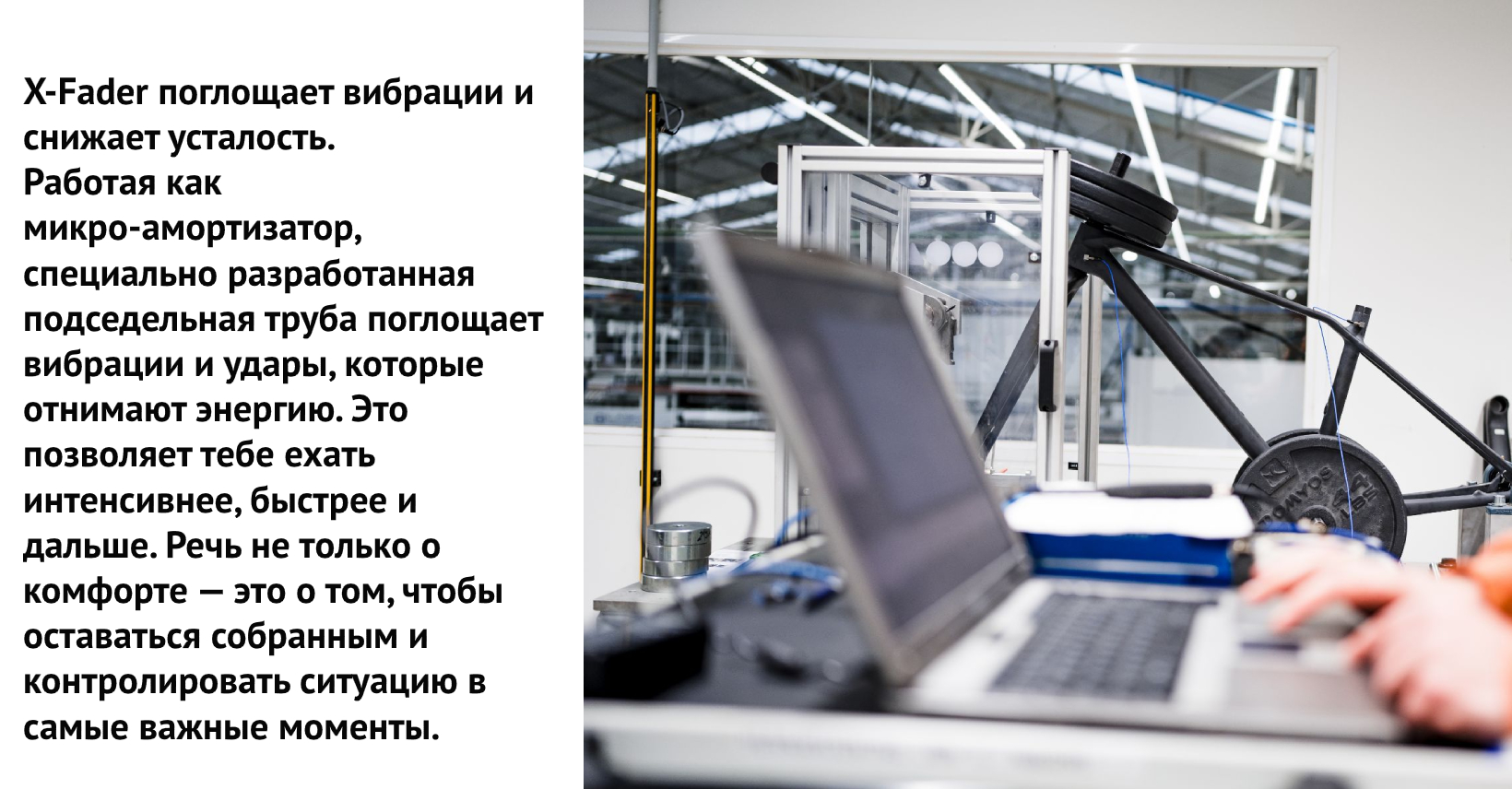 Точный контроль профилей и материалов труб в сочетании с нашей технологией X-Fader поглощает вибрации трассы, которые вызывают усталость на длинных дистанциях. Двигайся легче, едь дальше!