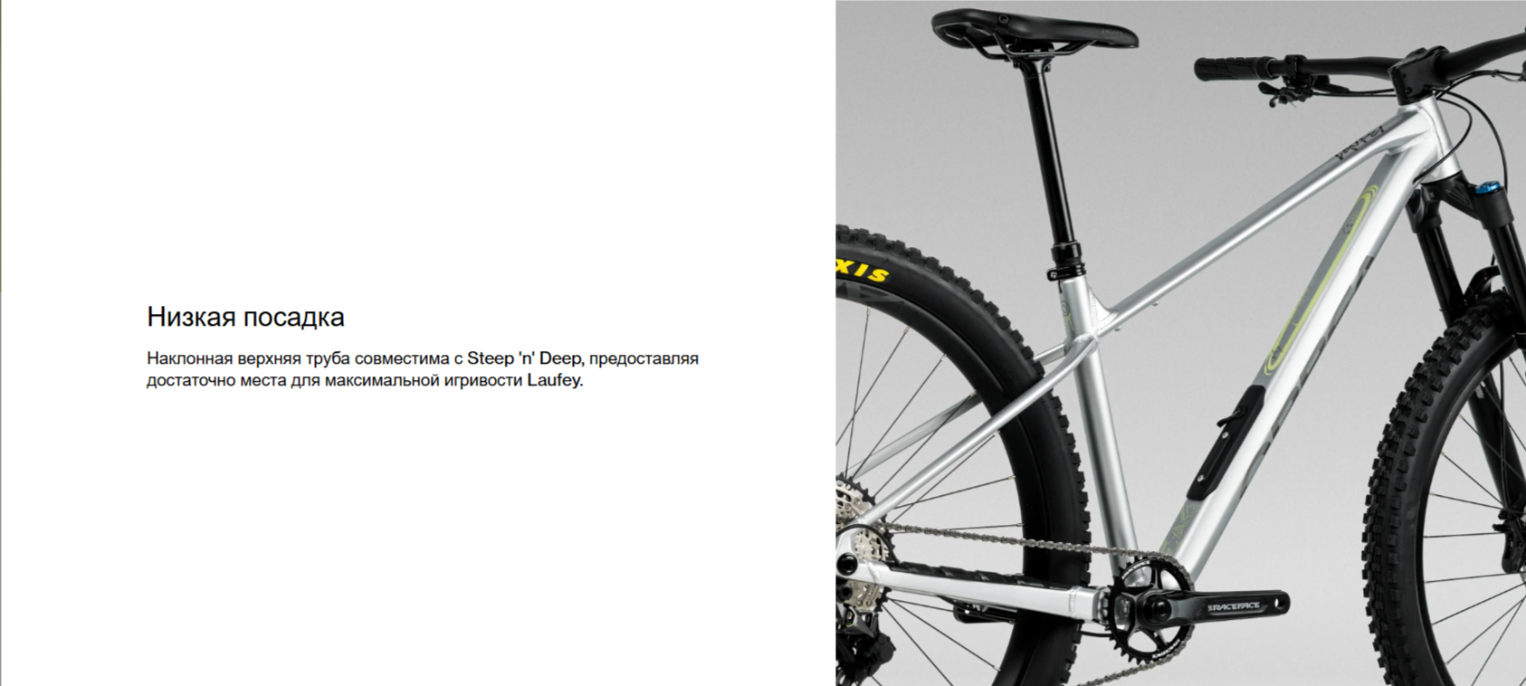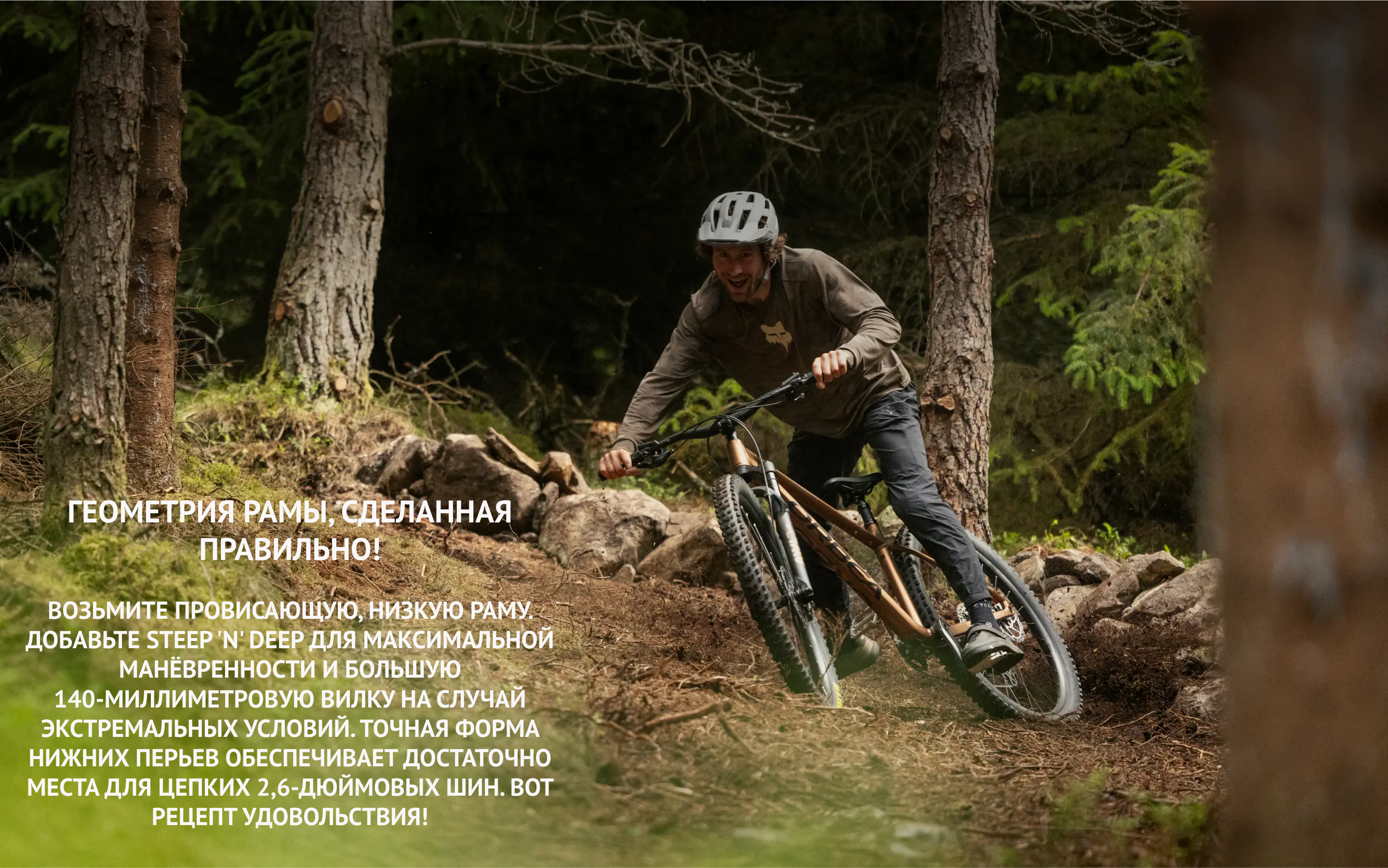 Низкая посадка, агрессивная геометрия, мощная вилка и умная конструкция рамы — чтобы гасить вибрации и смягчать удары. Просто сосредоточься на скорости и кайфе!