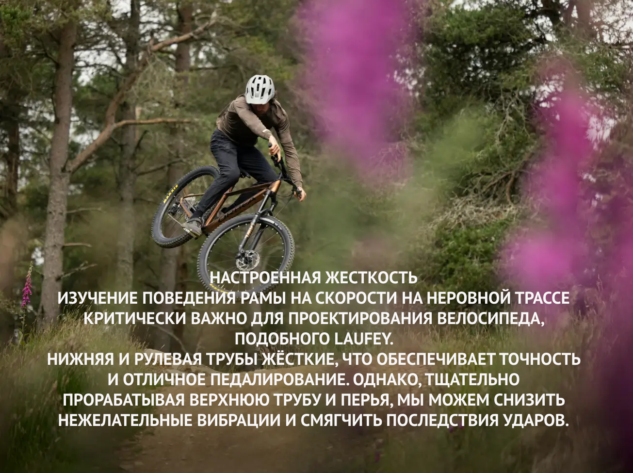 Когда трасса становится жёсткой, Laufey демонстрирует свою магию: идеальный баланс жёсткости и податливости. Каждая труба рамы продумана до мелочей, чтобы дарить максимально отзывчивое и заряженное на драйв ощущение от езды.